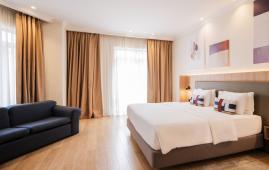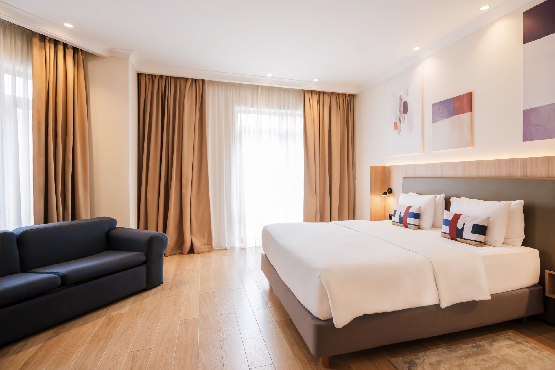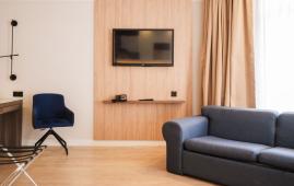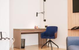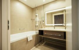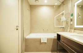 Уютный просторный номер, сочетающий в себе функциональность и современный дизайн, выполненный в теплых тонах с с одной двуспальной кроватью King Size, выделенными гостиной зоной с диваном и LCD-телевизором, рабочим местом. В наличии номера с видом на канатную дорогу или во внутренний дворик. Номер оснащен индивидуальной системой кондиционирования, персональным сейфом, большим рабочим столом, утюгом и гладильной доской, шкафом, телефоном, светонепроницаемыми шторами, станцией для приготовления чая и кофе, мини-баром. Санузел оборудован душевой кабиной, банными принадлежностями, зеркалом с подсветкой, феном, халатом и тапочками.