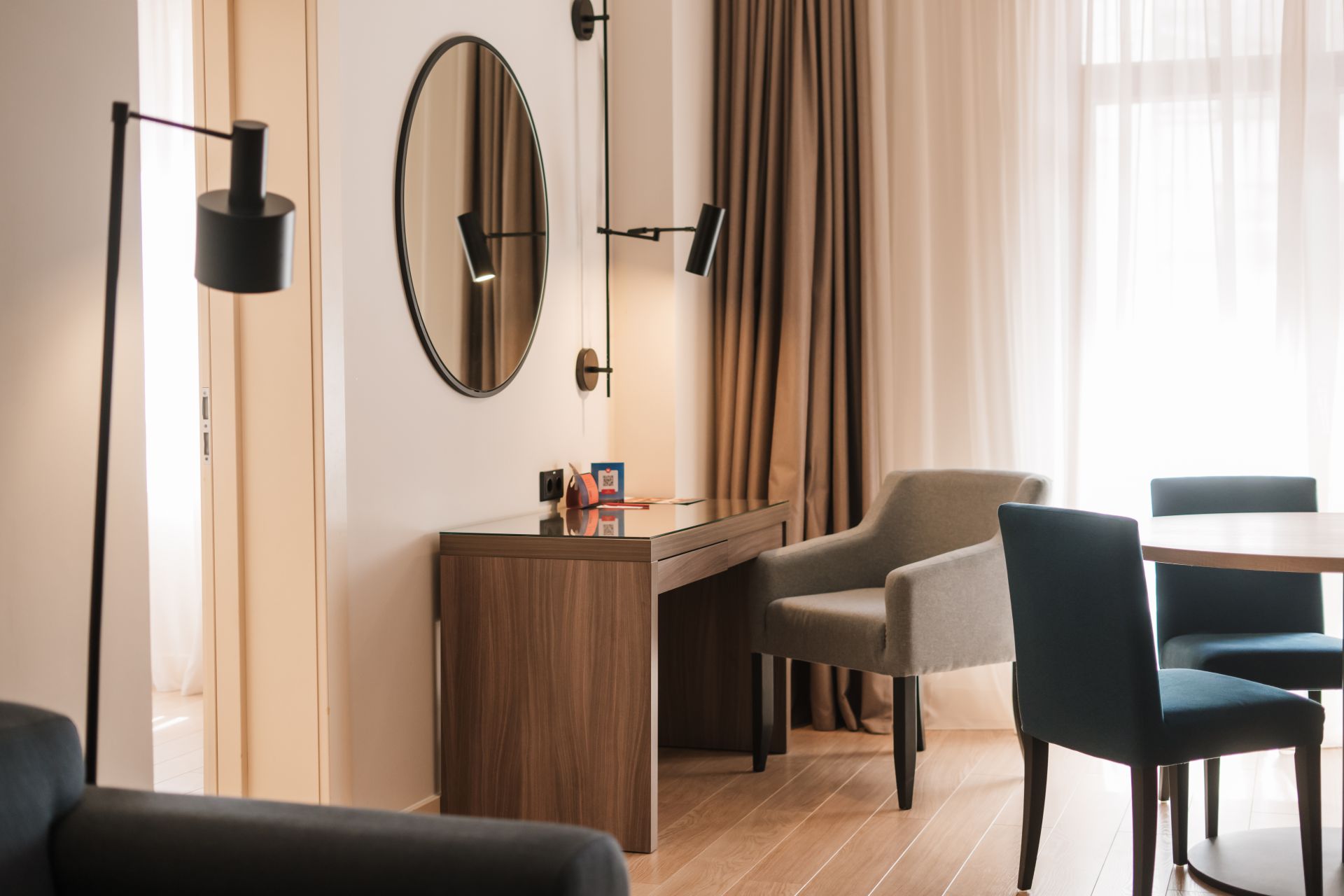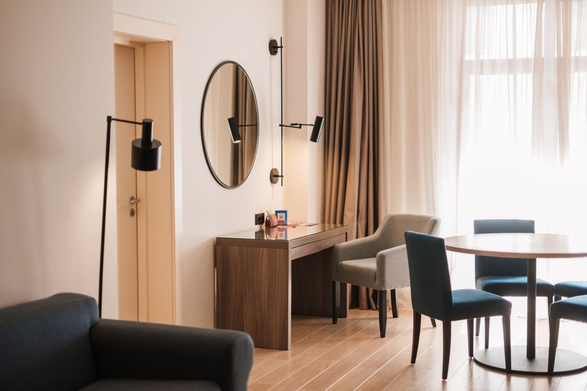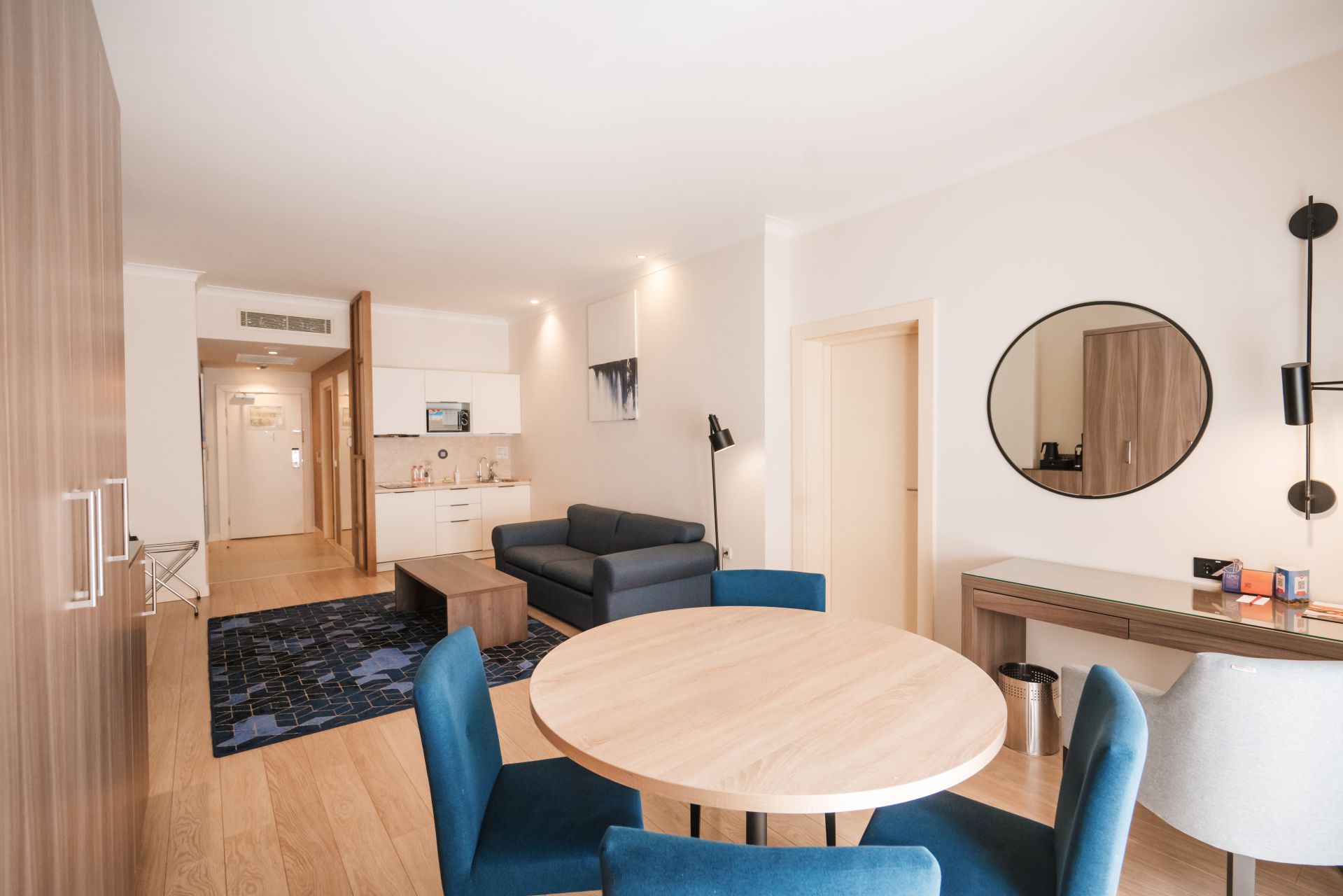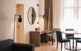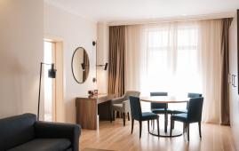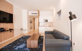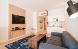 Светлый и просторный семейный двухкомнатный апартамент с одной спальней, отдельной гостиной с мягкой мебелью, оборудованной кухней и полноценной обеденной зоной.