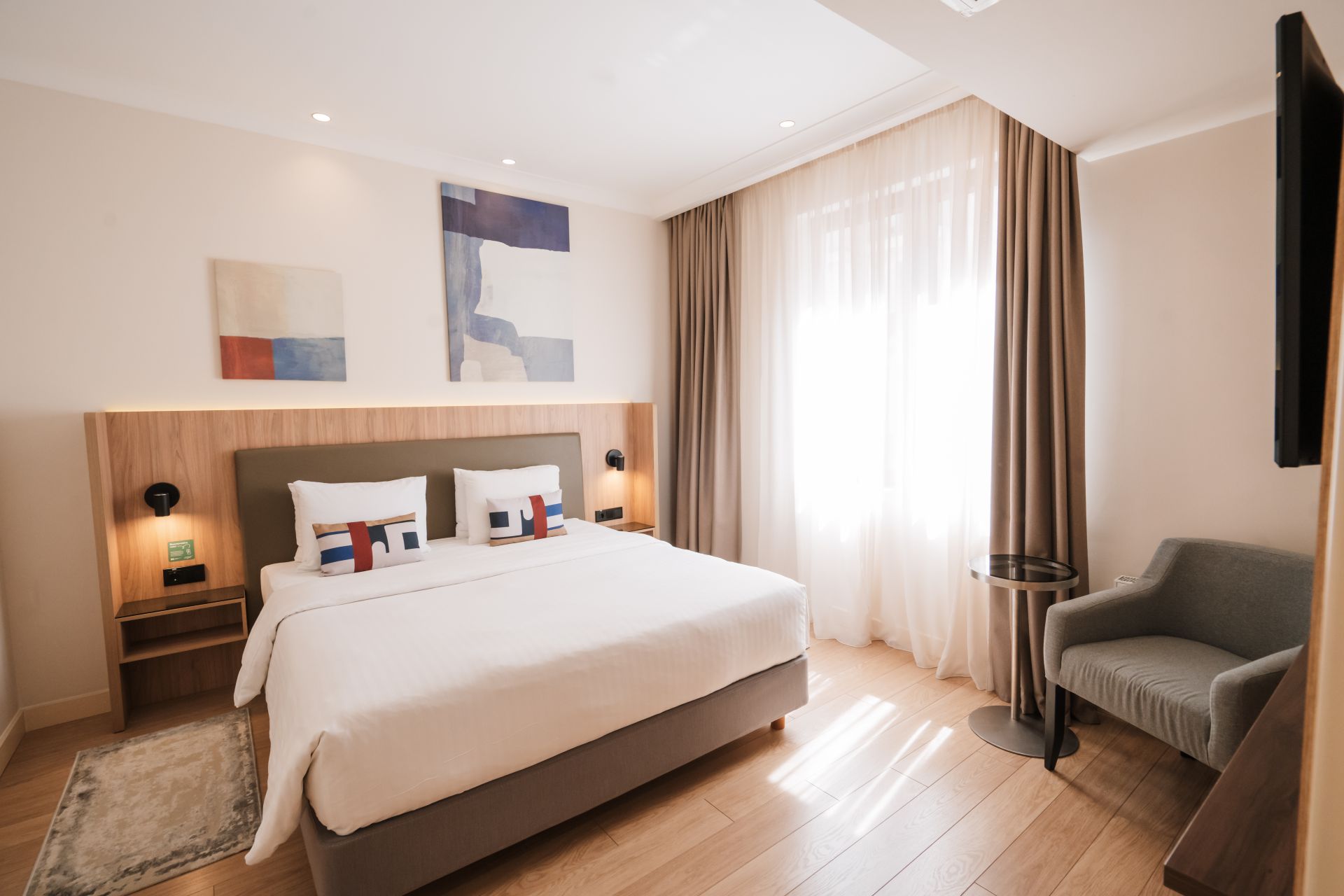 В наличии номера с индивидуальными балконами, французскими балконами или собственной террасой. Окна номера выходят во внутренний двор отеля.