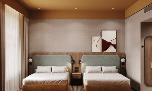 Современный однокомнатный номер с двумя односпальными кроватями и рабочей зоной.К услугам гостей чайная станция и фирменная косметика в ванной комнате. Без вида на горы. Дополнительное место в номер не предоставляется.